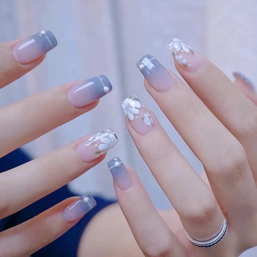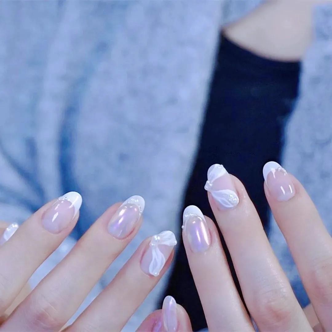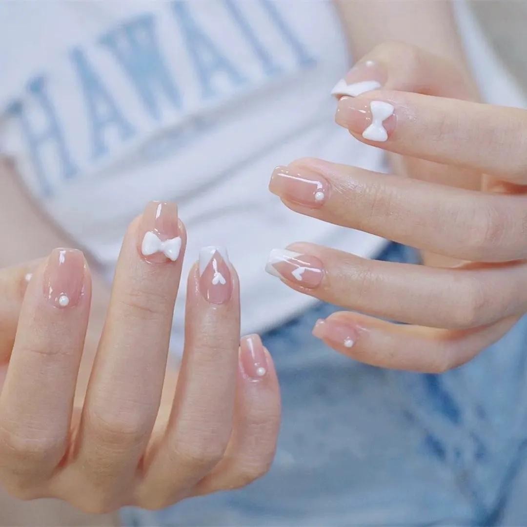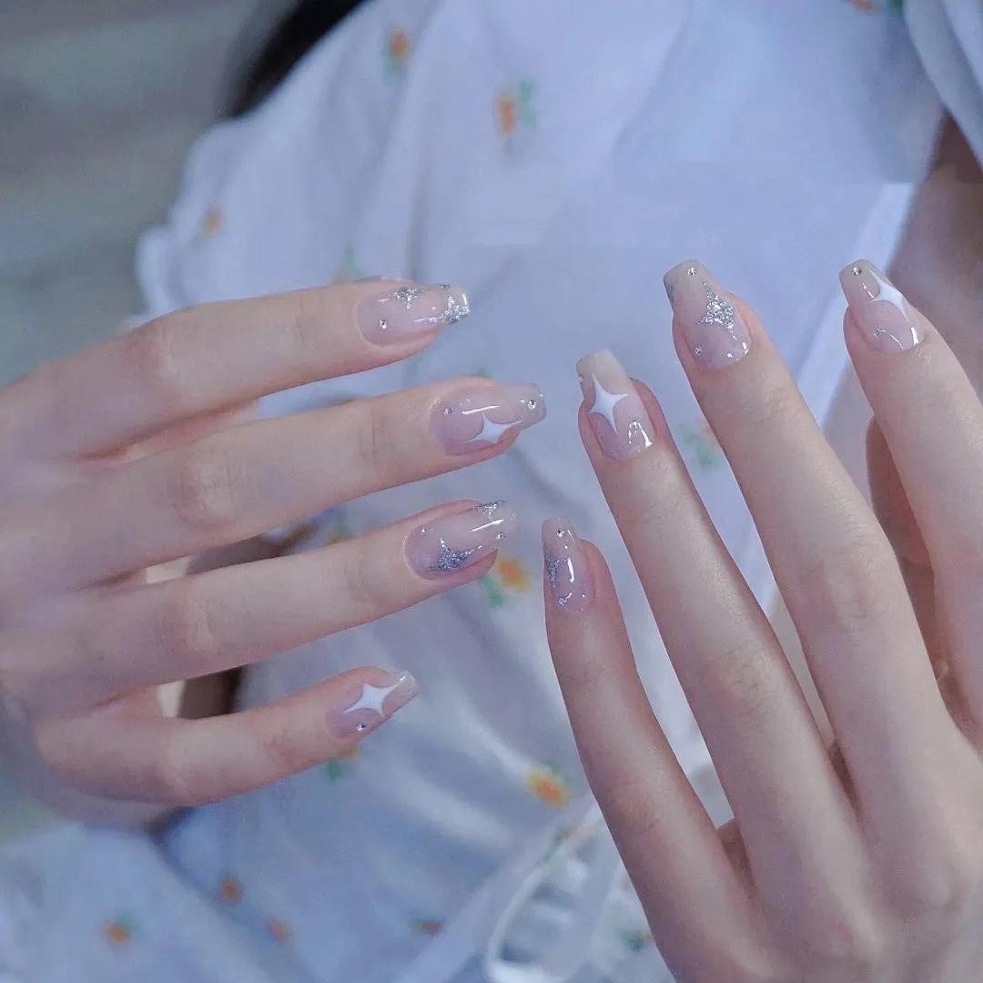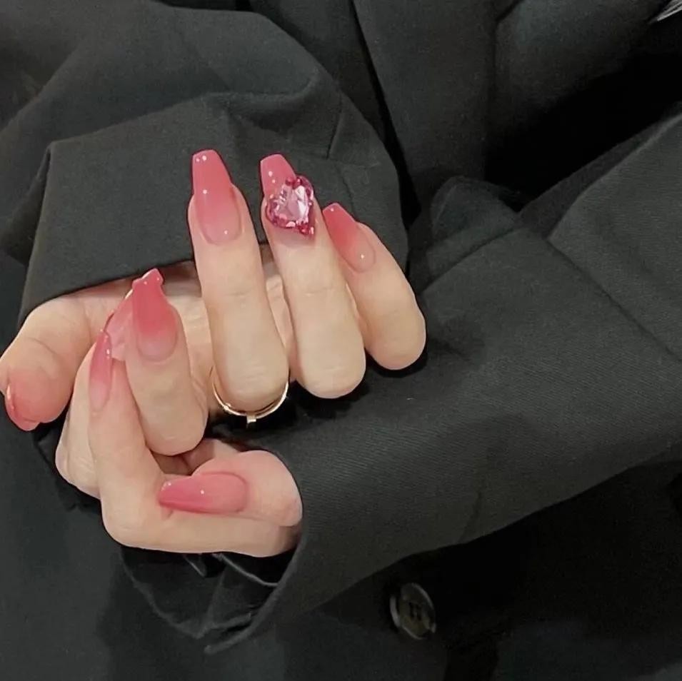 其中小编觉得最打眼的还是冰透渐变系列的美甲,上手水汪汪的,像小家碧玉般楚楚动人~夏天做它准没错!