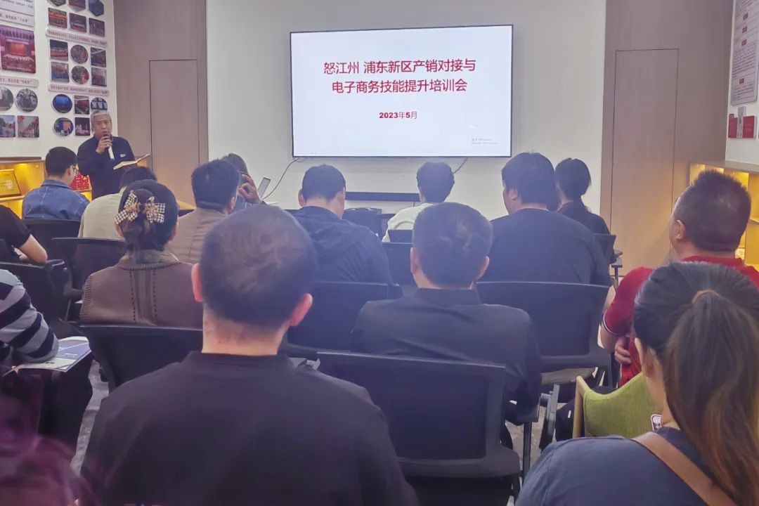 2023年5月11日上午,调研团在浦东-怒江青年服务站对怒江州本地企业进行了电商运营培训。