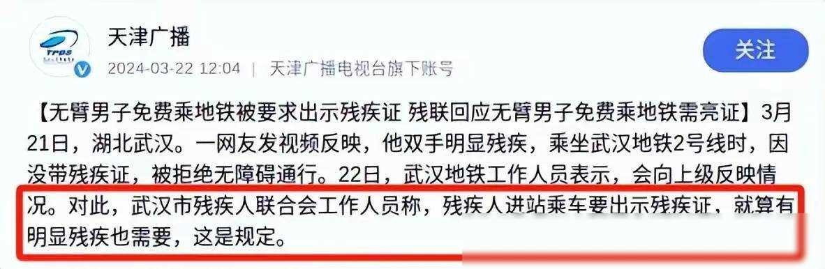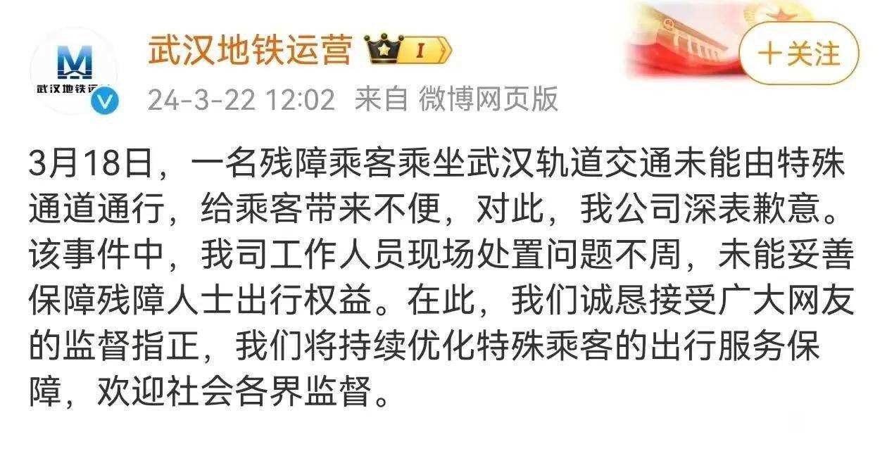 彻底闹大!武汉地铁后续:残联发声支持地铁,男子身份曝光被质疑