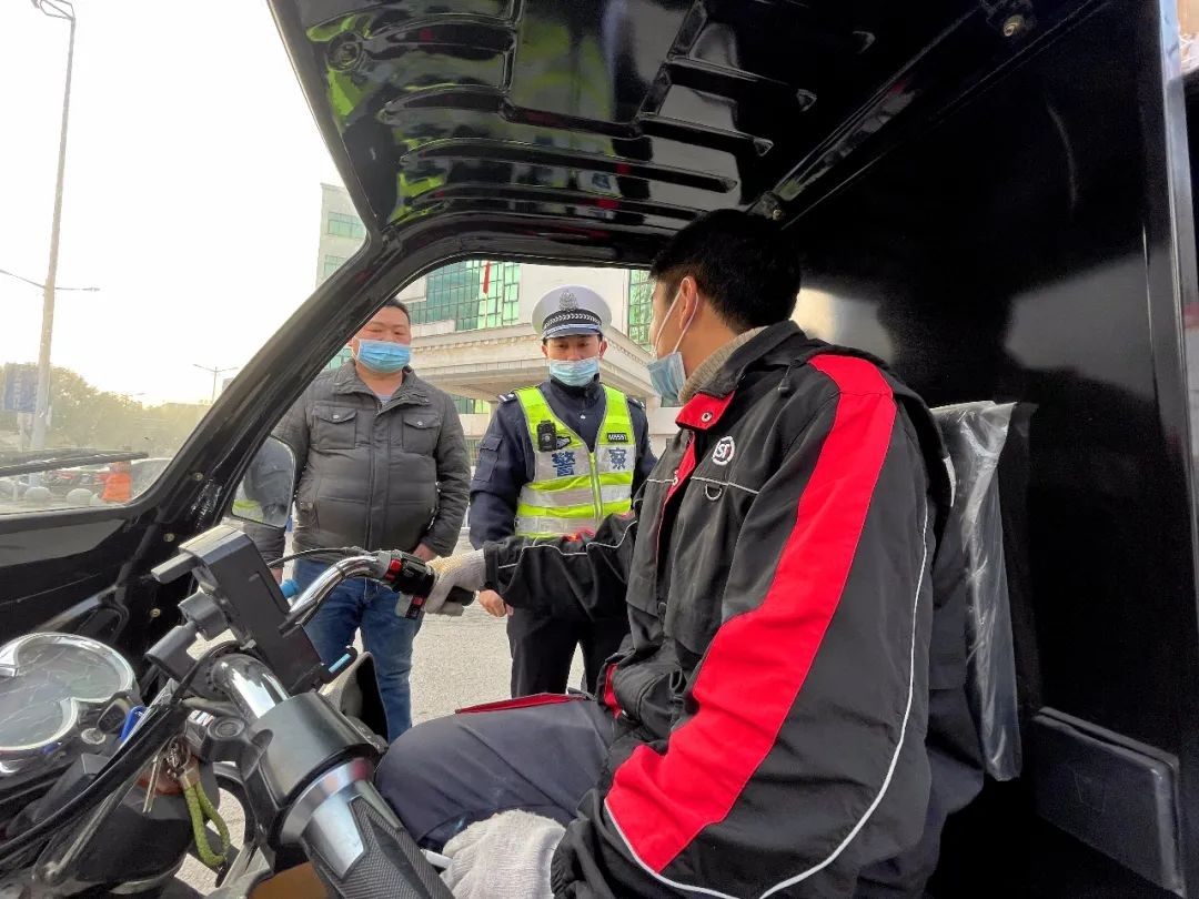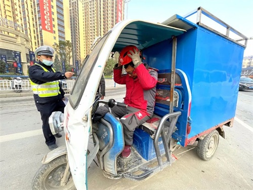 联合执法人员随即要求这名驾驶员正确佩戴安全头盔。而在随后,执法人员又连续发现5辆顺丰快递的电动三轮车驾驶员,未佩戴头盔骑行。