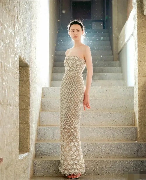 这次亮相,她不再是那个青涩的少女,而是历经岁月洗礼,更加成熟、自信的女人。珍珠裙衬托得她肌肤胜雪,气质高贵,举手投足间都散发着迷人的魅力。