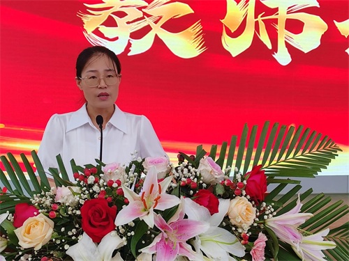 教师代表李瑾老师发言:她代表全体教师对高一新生的到来表示热烈欢迎,勉励同学们心中坚守初心,只有坚持初心并为之努力的人才会获得成功。表示自己将以饱满的精神风貌,积极的工作热情,博大无私的胸怀,去呵护每一位学生,不放弃任何一个学生,师生携手共进,共同谱写壮丽新篇章。