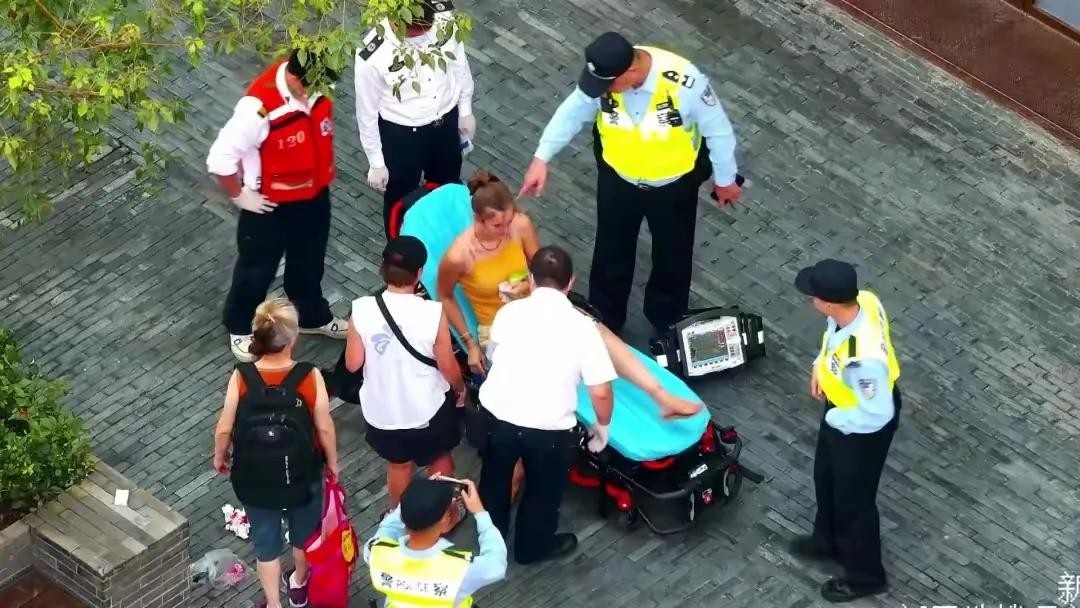 上海新天地外籍女游客摔倒,血流不止昏迷街头,民警紧急救助!