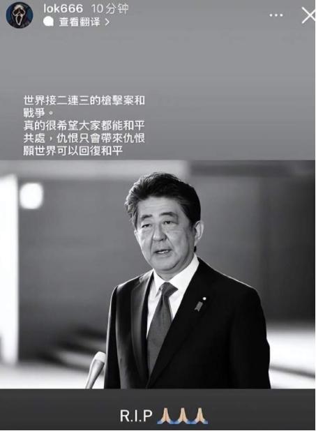 余文乐在安倍遇刺之后,很快就在ins上发布悼念文,并呼吁人们放下仇恨,让世界恢复和平。在发文的同时,他还配上安倍的黑白照片和双手合十的表情,看起来十分悲伤。