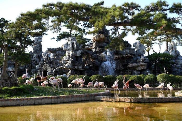 刚进入园区,游客们正在围着一群火烈鸟拍照,“儿子,你知道这个是什么吗?这就是火烈鸟。”一位带着孩子来游玩的父亲边拍照边向孩子科普。