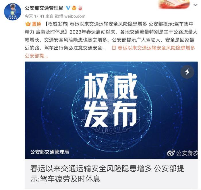 据公安部交通管理局官博消息,2023年春运启动以来,各地交通流量特别是主干公路流量大幅增长,交通安全风险隐患也随之增多。近日,宁夏、云南、福建、安徽、重庆、陕西等地接连发生一次死亡3人以上的道路交通事故。