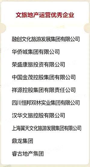 2021中国文旅地产10强企业榜单由中国房地产TOP10研究组发布,主办单位为中国企业评价协会、清华大学房地产研究所和中指研究院三家机构。组委会介绍,当前消费升级背景下,政府提出不断激发文化和旅游消费潜力,推动着全国居民文化和旅游消费规模保持快速增长态势。