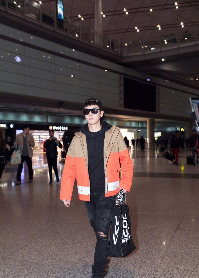 盛一伦这身秋冬穿搭街拍,整体黑色沉稳,而橘棕拼色夹克,给人寒冬中一丝明媚的温暖!