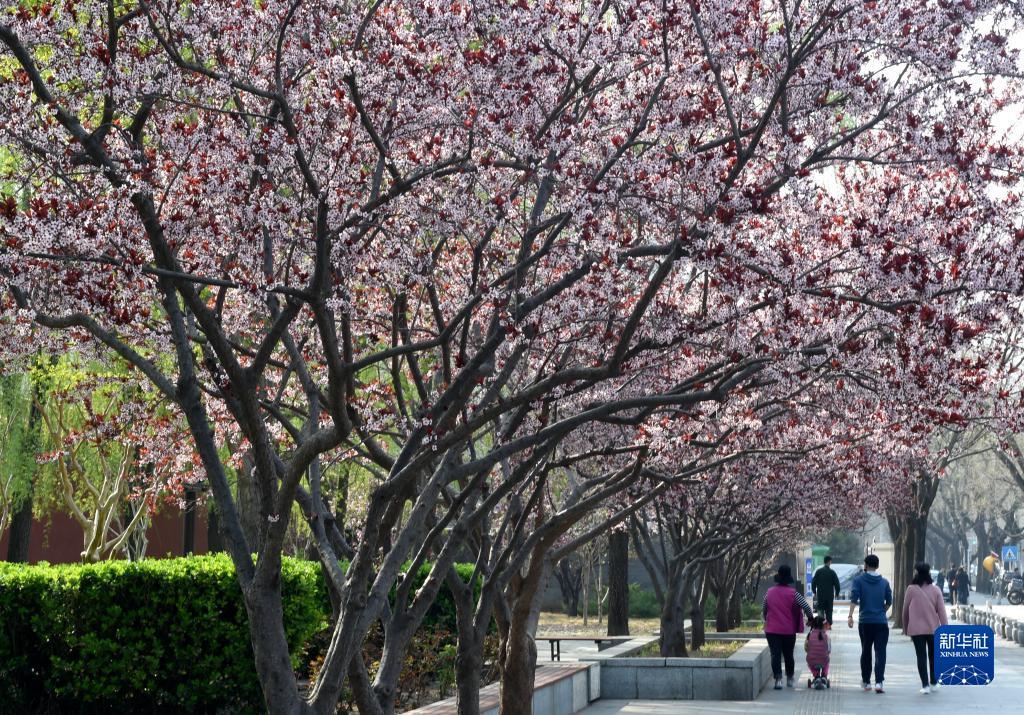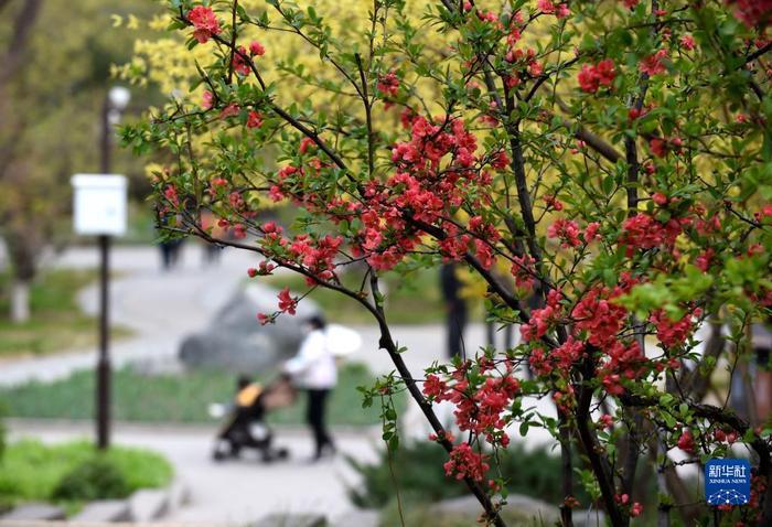 3月31日,小朋友在北京宣武艺园玩耍。春风送暖,北京处处春花绽放,姹紫嫣红,美不胜收。新华社记者 罗晓光 摄
