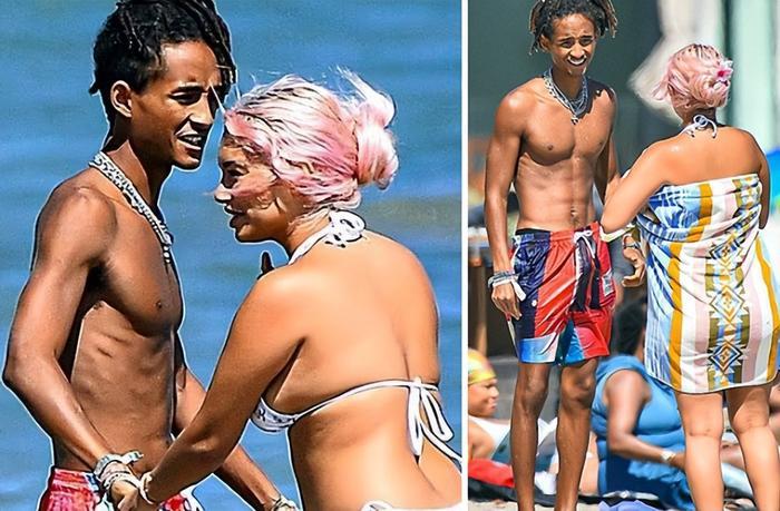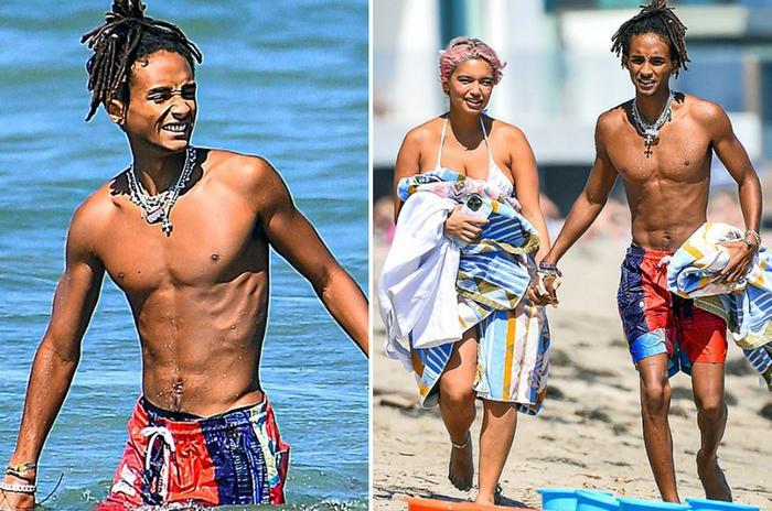 威尔史密斯儿子近照,海滩秀恩爱!体型干瘦,摸女友肚子疑当爹