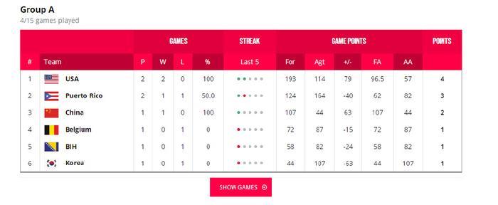 此役后美国二连胜积分4分A组第一,净胜分79分也是A组第一。