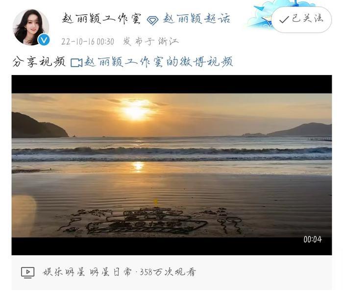 除了粉丝之外,16日凌晨,赵丽颖工作室也晒出了一则海边潮汐涌动的视频,无人无文案,只有不断涌动的潮汐和天上变幻莫测的风云。视频的结尾,工作室在沙滩上为赵丽颖画上了一个生日蛋糕,还用黄色的铲子当成蜡烛点上了。虽然一切静默无声,但是意味妙不可言,陪伴是最长情的告白,能想到如此独特的祝福,工作室也是费劲心思了。
