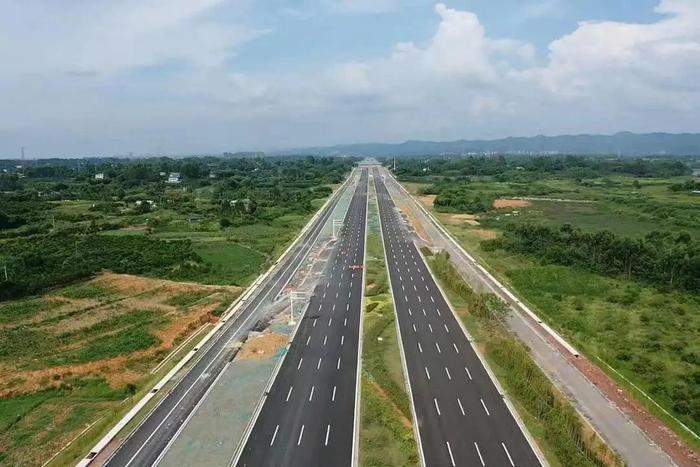 次月,天府大道眉山段启动招标。该大道途经眉山天府新区、仁寿县、东坡区,止于东坡区岷东大道,路线全长约17.7km,路基宽度80m,双向12车道,主车道设计时速80km/ h ,总投资约26亿元。2022年12月,记者从项目部获悉,眉山段已基本具备通车条件,将于2023年正式通车。