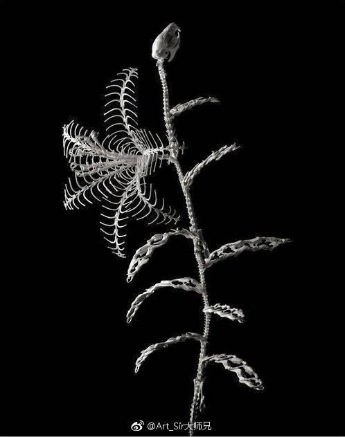 日本雕塑艺术家的 Hideki Tokushige 使用动物的骨骼创作而成的“白骨之花 ”