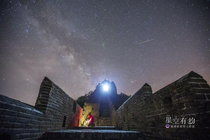 这是北京市天文爱好者王俊峰2017年4月23日在河北承德金山岭长城拍摄的天琴座流星雨。
