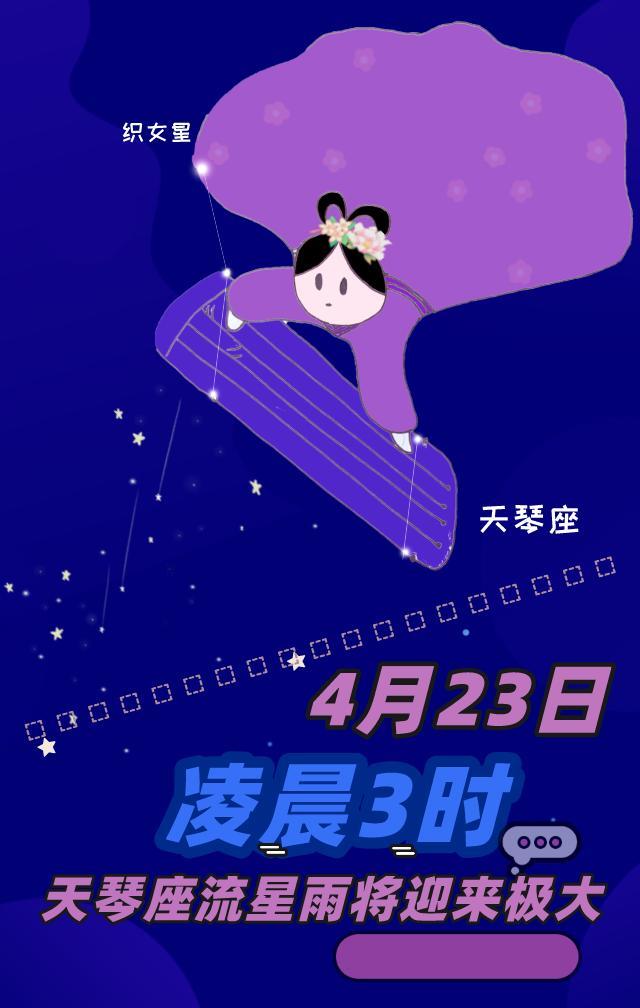 天文科普专家介绍,4月23日凌晨3时,天琴座流星雨将迎来极大。届时只要天色晴朗,我国乃至北半球各地,都可目睹到天琴座流星雨。最佳观测时间是22日晚至23日晨。
