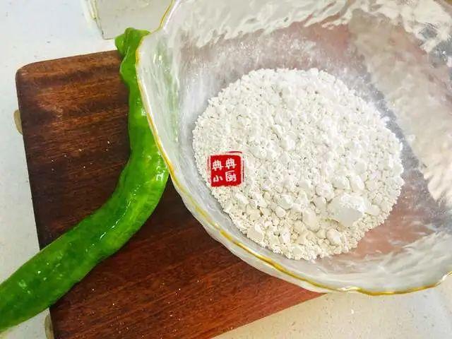 准备好所有的食材,山芋粉多放一些,青椒切碎备用。