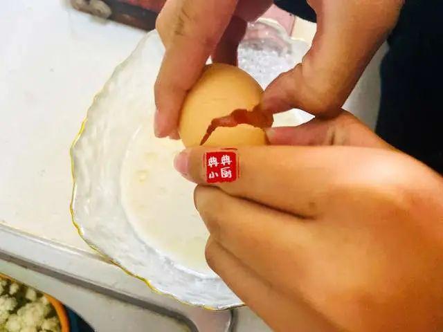 山芋粉里加清水搅拌至没有干粉为止,里面加一点食用油,再打一个鸡蛋进去。