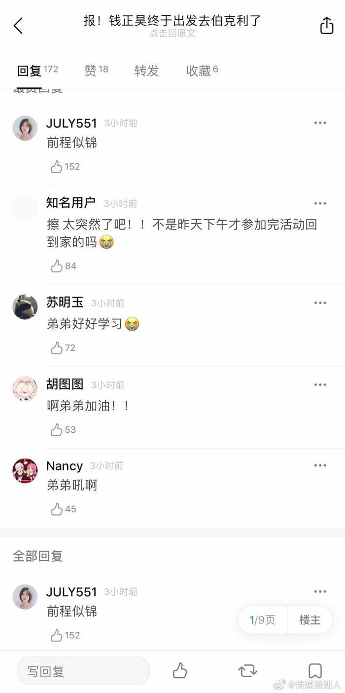 钱正昊出发伯克利上学,弟弟好好学习、沉淀自己,期待以后带来更好的音乐作品。