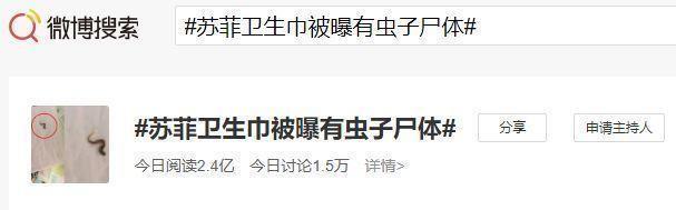 7月28日,“苏菲卫生巾被曝有虫子尸体”话题登顶热搜第一。