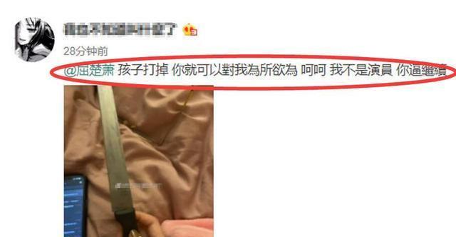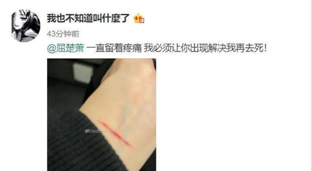 事情过了这么久,屈楚萧很少出现在公众场合,没有想到却突然曝出了他疑似家暴女友的事情。有一位女网友发文艾特了屈楚萧,看起来本人非常激动,用词很过激,手上还拿了一把刀,并且有一张照片手腕已经流血。