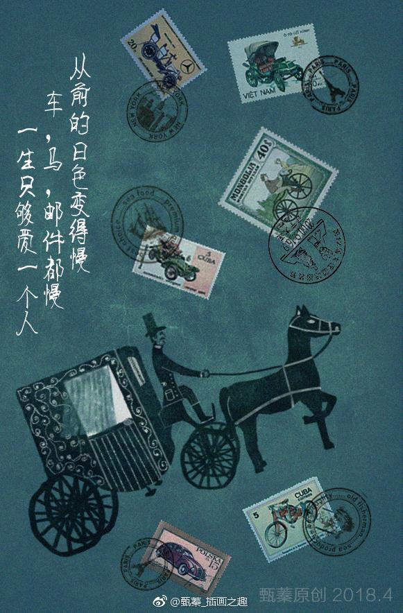 为木心先生的《从前慢》配了几张原创插画小图