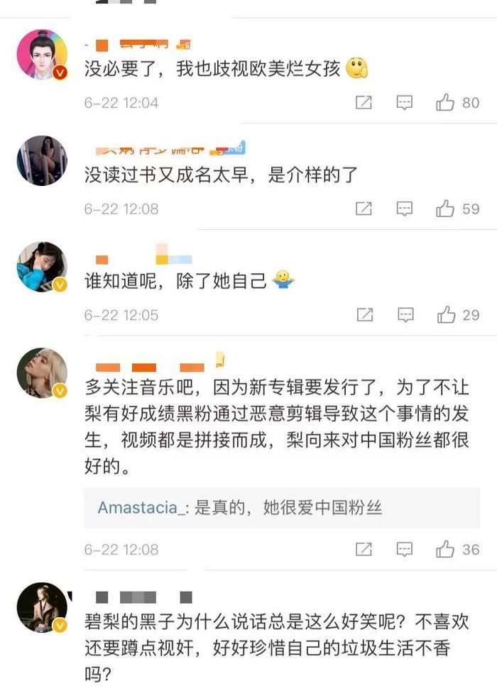 网友关于她的回应,认为她年少成名,读书少,意思文化水平低,所以可以理解她的不懂。当然也有人认为她对中国粉丝很好,即将发布新专辑,可能是黑粉恶意剪辑导致事态发展引发高度关注,所以她是被黑了?