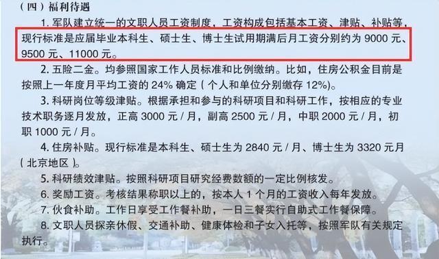 大多数人之所以报考军队文职这个岗位,就是看中了薪资福利待遇,一位在职员工晒出了自己的“收入”后,网友直呼:真香!社会招聘的大专生光在实习期最低都有7000工资,职员的教育程度越高,底薪就越高,在成为正式员工之后,还会有各种各样的福利补贴,比如生活性补贴和住房补贴等等月薪过万基本没有问题,当然这样的收入水平是根据当地的经济发展决定的。