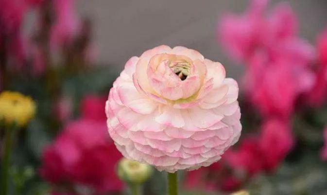 花毛茛(gèn),芹菜花,陆莲花,为毛茛科、花毛茛属多年生草本花卉。花色丰富,多为重瓣或半重瓣,花型似牡丹花,但较小,花直径一般为8cm~1ocm。现在各国多有栽培,荷兰、英国、法国、美国、日本等栽培较多,并且培育出许多切花和盆栽品种。