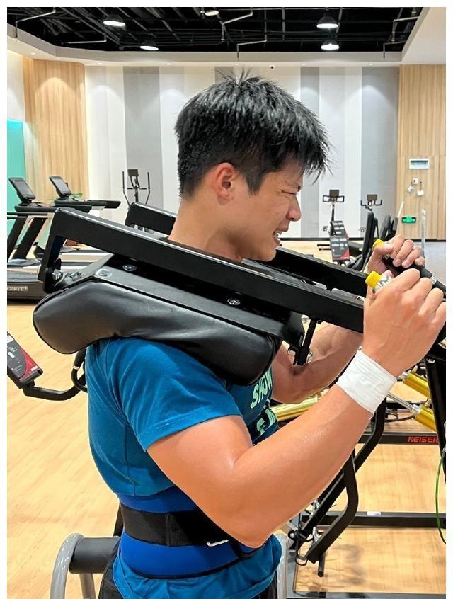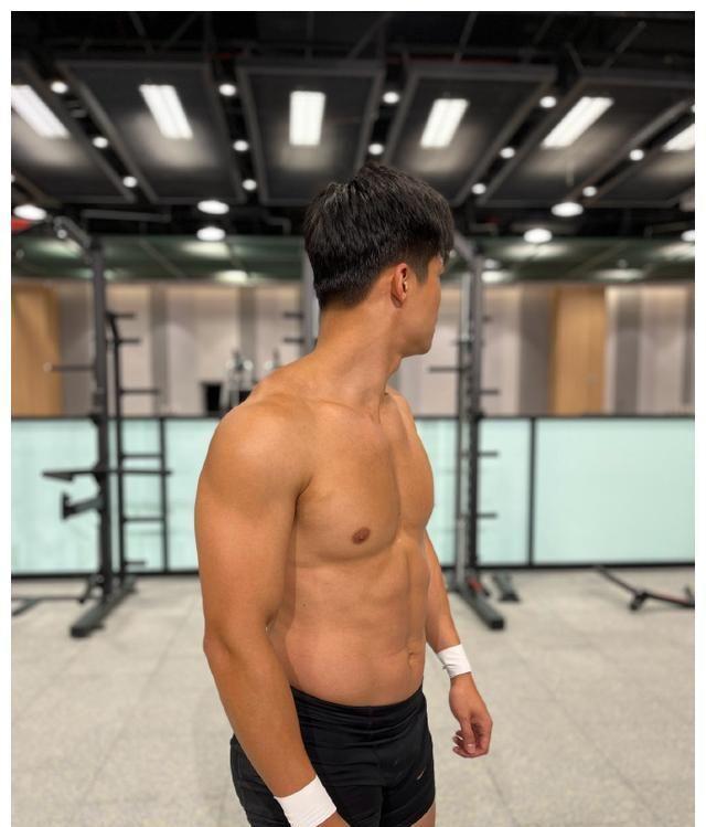 应该是获得了一个阶段性的“胜利”,房子形状的腹肌明显,斜方肌高高鼓起,腰部还坠了一点,当然两条飞腿没有展示出来。