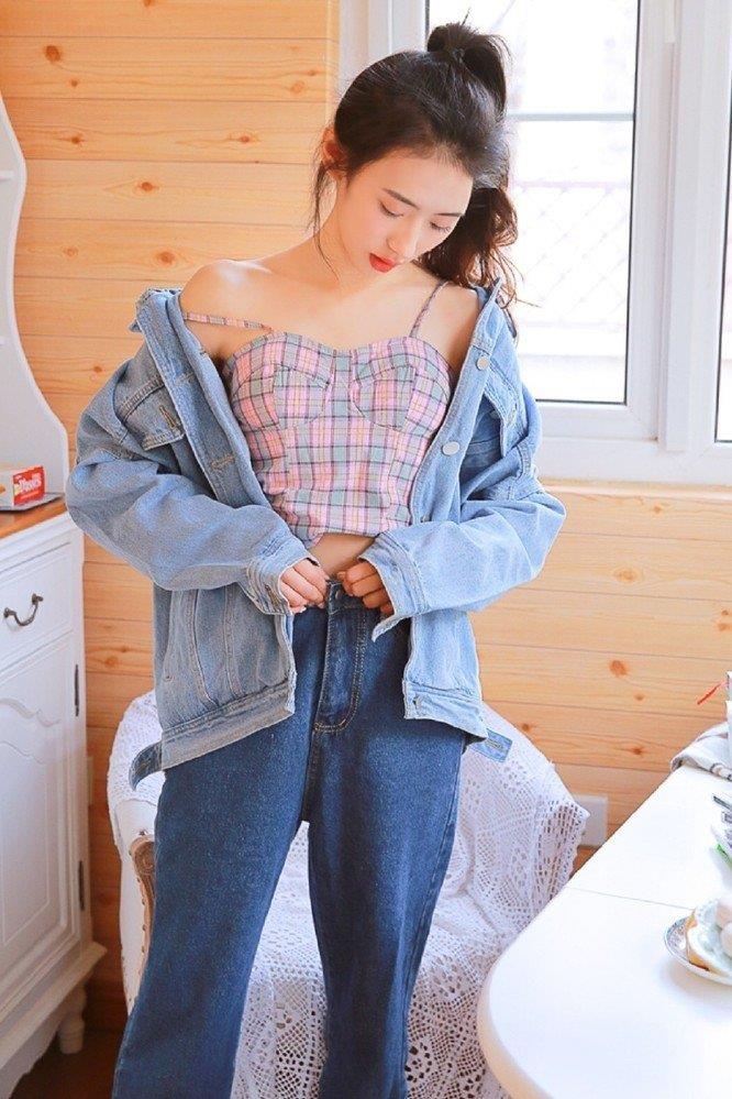 牛仔长裤美女性感吊带内衣诱惑写真集