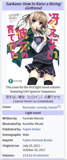 还有一件小事想说说,我不知道你们知不知道《不起眼女主角培育法》的英文名称叫做《Saekano: How to Raise a Boring Girlfriend》……