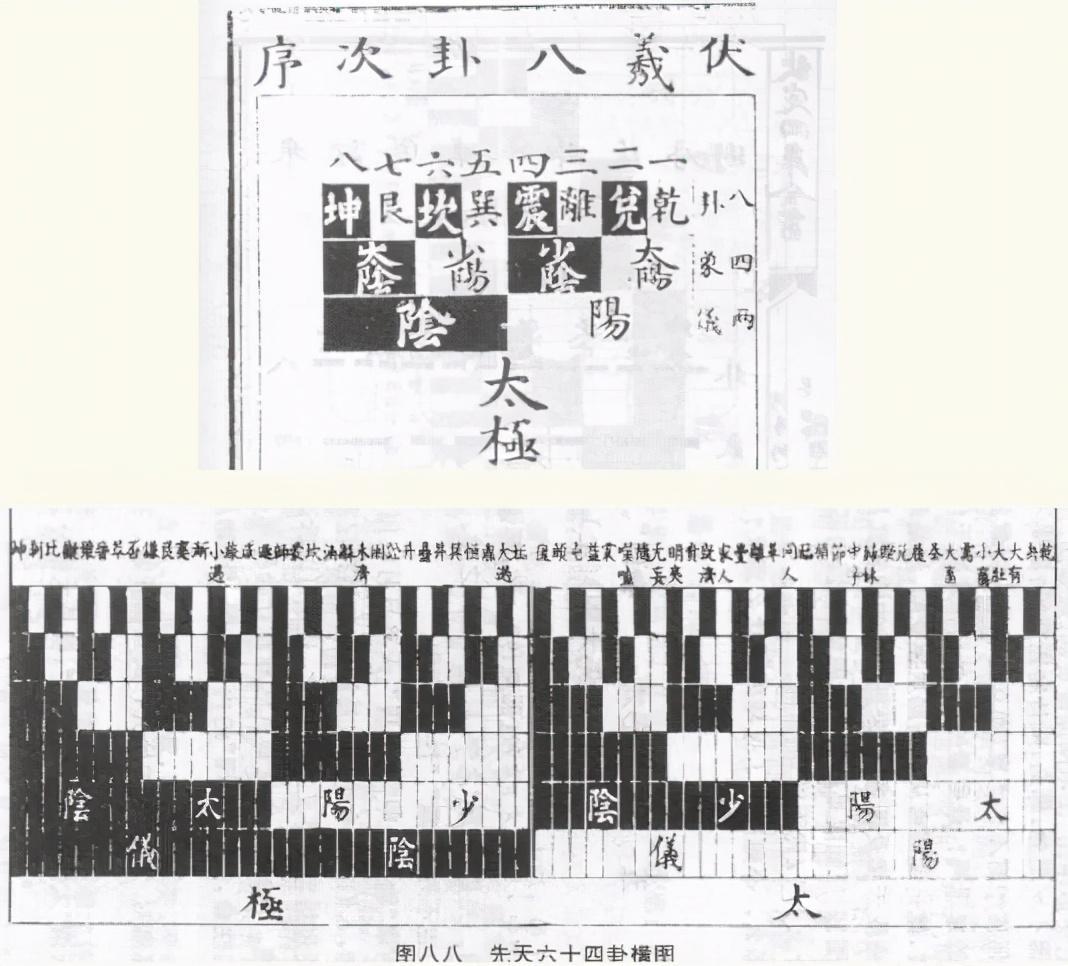 推导演化的过程中一定要先写阳爻,再写阴爻。如两仪中一定要先写阳爻,再写阴爻。