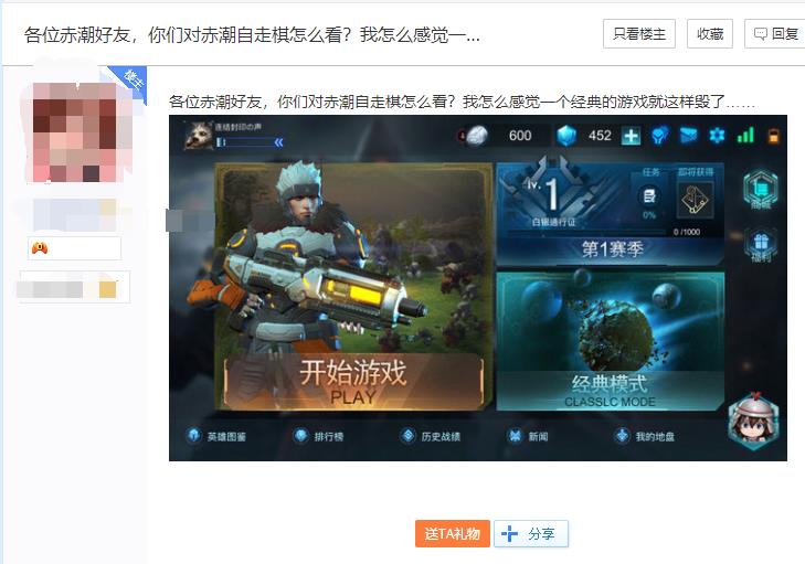在百度贴吧“战争艺术赤潮吧”中,如今大多数贴子都是在讨论自走棋模式的玩法与排兵布阵,而关于本身RTS的部分则少的可怜。在大量关于玩家们吹自己如何“吃鸡”的帖子中,还穿插着一些零散的老玩家们对经典模式中各种BUG的口诛笔伐。