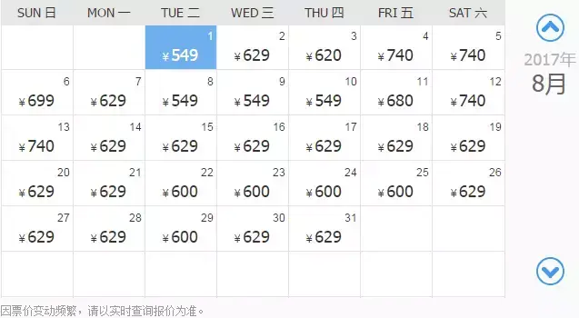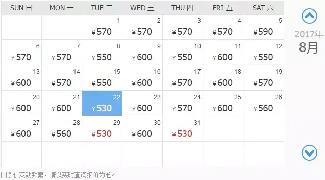 8月22/29/31日最低价:530元