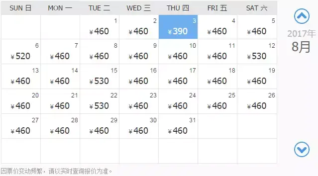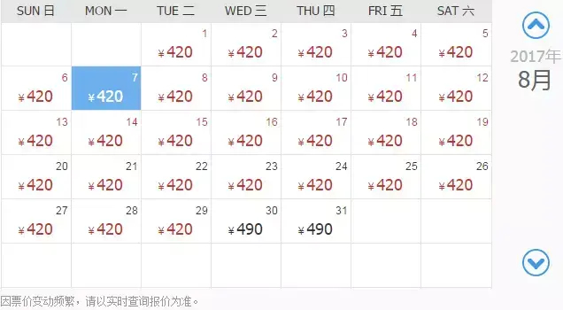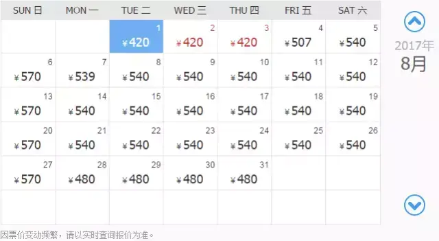 8月1/2/3日最低价:420元