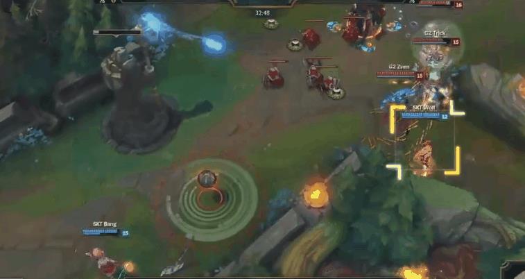 而婕拉先手开团的例子和操作,便是Wolf当时的经典闪现过墙强开敌方三人的草错,闪现过墙后,E技能捆住三人然后接上大招,形成完美控制链,再搭配上队友的爆炸AOE伤害,便可以轻松的赢下团战,这里需要注意的就是,先手的婕拉一定要E技能起手,而不是大招。