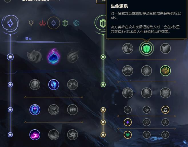 巫术的主系相信大家都很容易理解,而为何副系我们选择坚决,其实也很好理解,婕拉本身是一个脆皮英雄,骸骨镀层可以有效的增加她的容错率,而生命源泉可以帮助队友在线上和团战时,有一定的恢复效果,要知道婕拉的大部分技能都能触发这个符文的效果。
