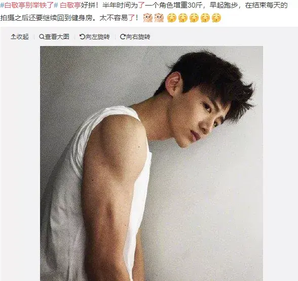 结果他非要这么执迷于健身、肌肉,反倒没了那种清秀的感觉、甚至看起来觉得很“可怕”~其实锤爷早就说过:小白是非常有主见的,别说是“非要保持少年感形象”这种不利于拓宽戏路的事儿了,哪怕是“炒cp”这种有利于上位的操作他都不肯呢!所以,在他看来,只有“为了一个角色拼尽全力”,根本就不存在“是否会有损于自己的形象和人气”~