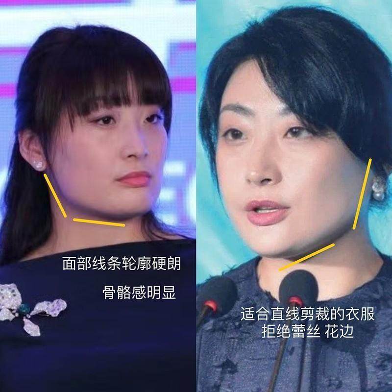1:脸型分析--宗馥莉的脸型属于下颌线立体,骨骼感比较明显的“方脸”
