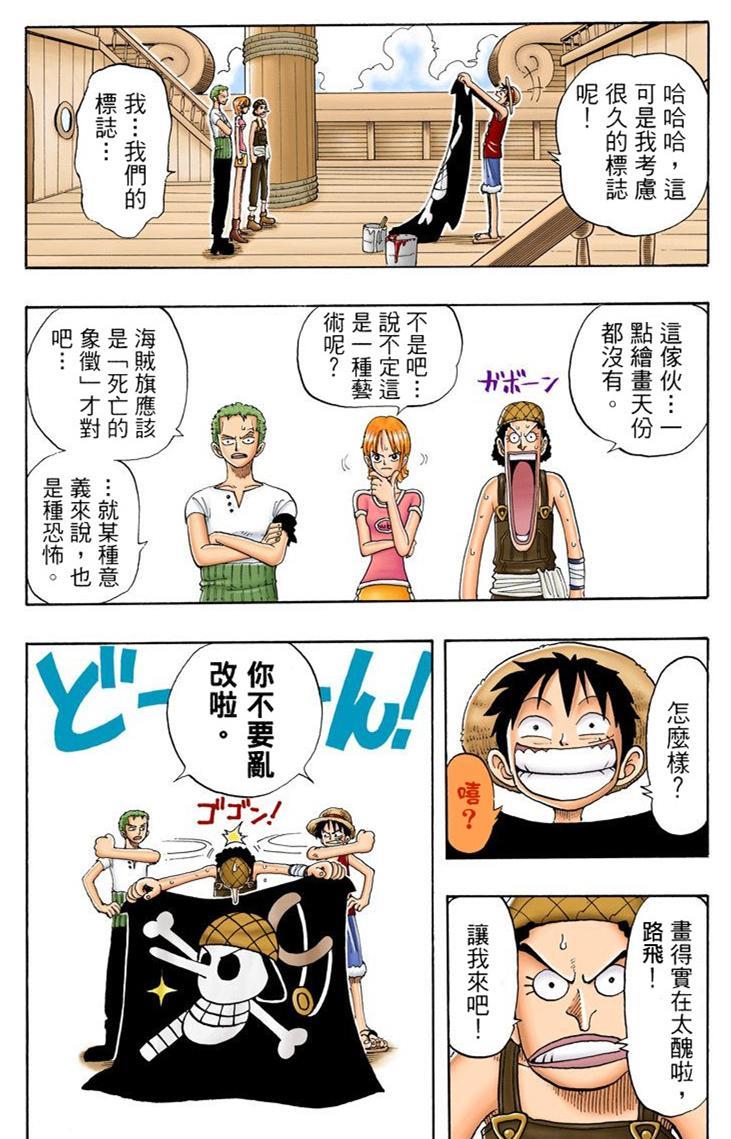 已经初具规模的草帽海贼团,有了自己的海贼船,于是开始设计海贼旗了,路飞这画功...