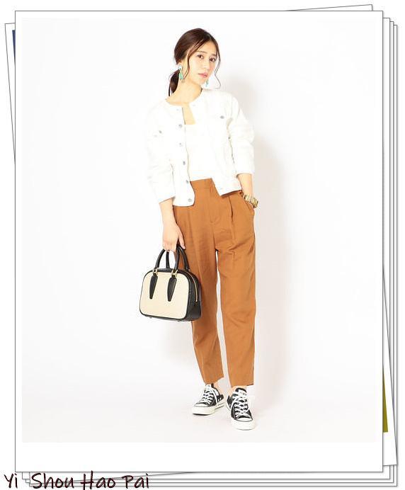 如果选择白色无领外套,则牛仔面料也会显得女性化。与砖红色锥形裤的搭配。建议你在鞋子中添加黑色帆布运动鞋。通过将边缘应用于柔和表情,可以完成清晰的白色外套造型。