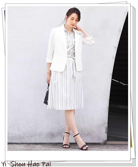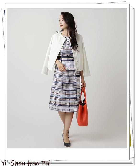 海军蓝线条的格纹连衣裙和白色外套可完成办公室搭配。如果你在白色x海军蓝色上添加一个红色的包,则可以享受海洋味的搭配♪黑色尖头浅口鞋在保持新鲜感的同时,非常聪明,可以收紧整个造型。