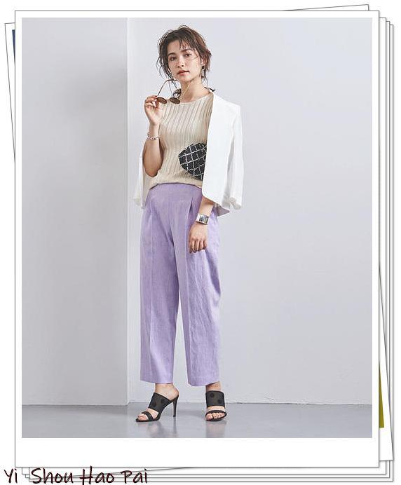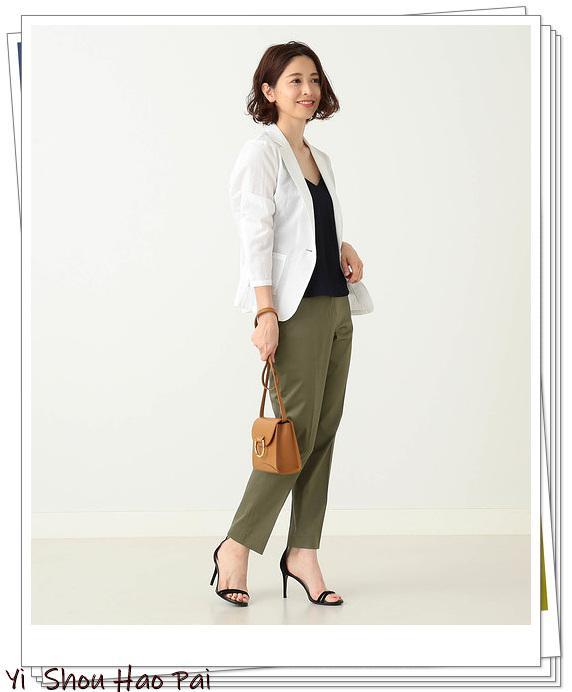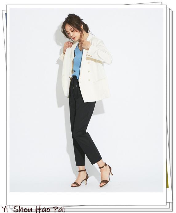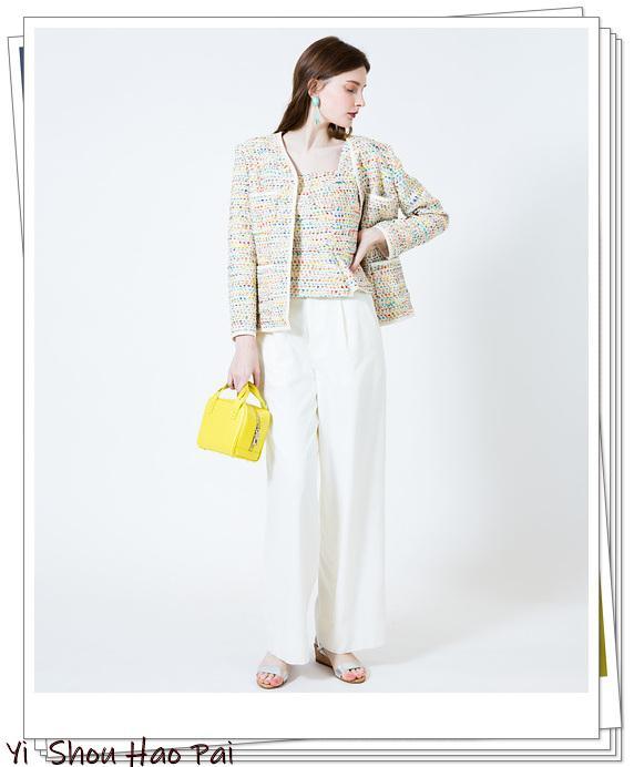 花呢夹克,基于白色,色彩丰富。如果内部使用相同的花呢材料,则可以得到正装的感觉。建议搭配白色阔腿裤,以减少甜美。让我们享受只有黄色的包和薄荷绿色的耳环带来春季色彩造型。