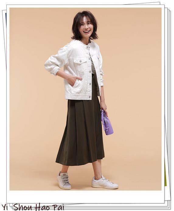 白色外套x绿色裙子