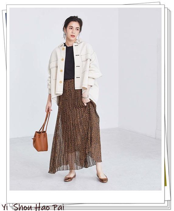 如果你想享受春季郊游的外观,军装外套x豹纹裙装是最好的选择♪白色外套给人一种休闲的感觉,并且感觉很大,但选择黑色作为内搭并增加清晰度。金色的芭蕾舞鞋为白色夹克的造型增添了一抹亮点。