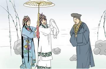 山伯忠厚纯朴,不解其故。英台无奈,谎称家中九妹,品貌与己酷似,愿替山伯作媒,可是梁山伯家贫,未能如期而至,待山伯去祝家求婚时,岂知祝父已将英台许配给家住鄮城(今鄞县)的太守之子马文才。美满姻缘,已成泡影。二人楼台相会,泪眼相向,凄然而别。