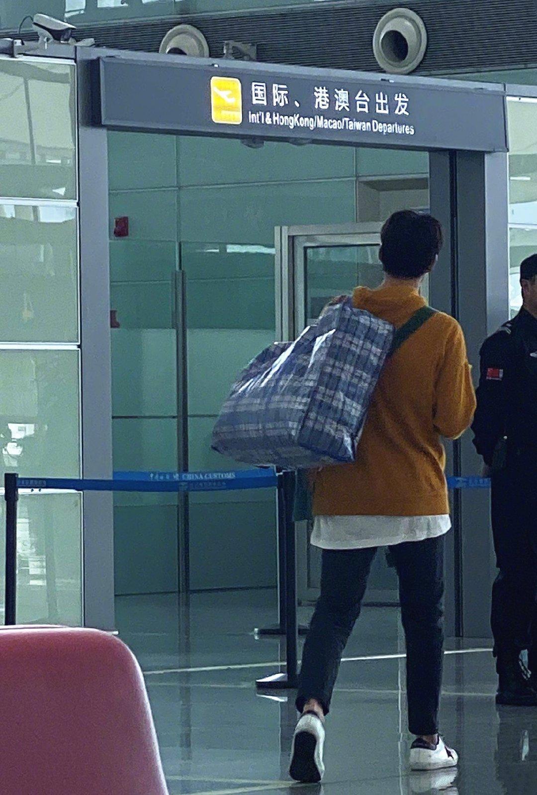 只见路透照中的魏大勋穿着小白鞋,黑色长裤搭上一个卡其色的连帽卫衣,不看照片的话一定是个时尚的大明星了吧,其实不然,在这身时尚的肩膀上,则挎着一个巨型的格格编织袋,瞬间就把魏大勋的时尚感压得死死的。即便是再换个人来,估计依然没有一丁点时尚感。