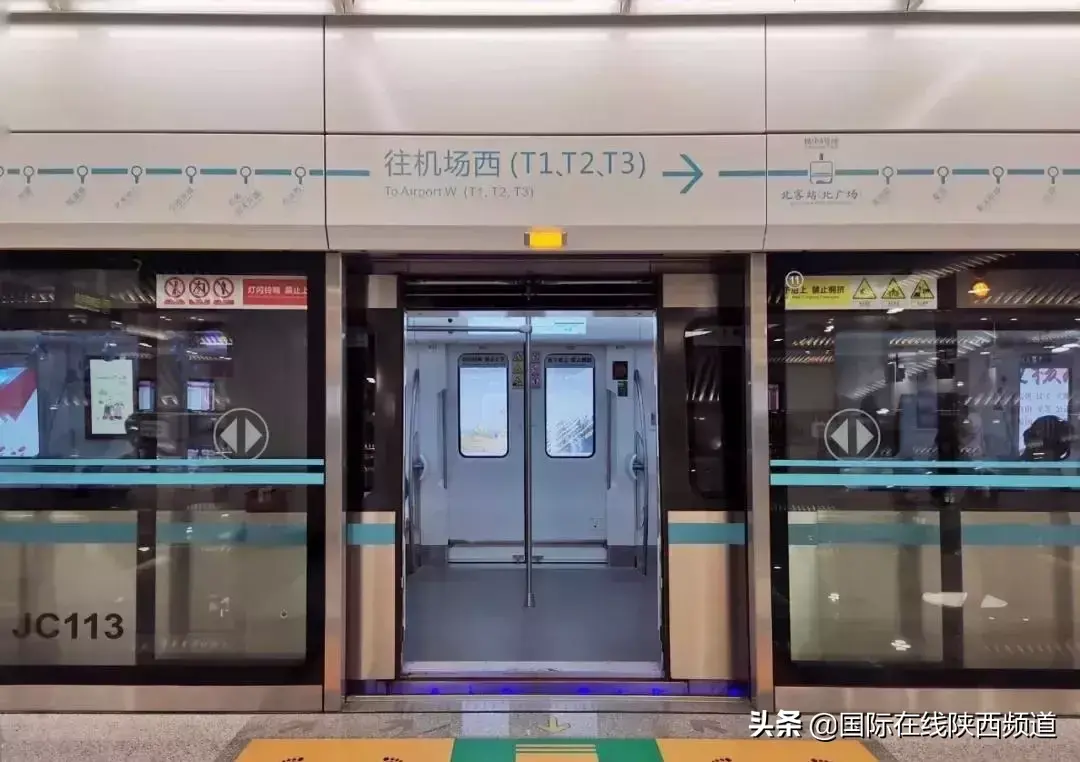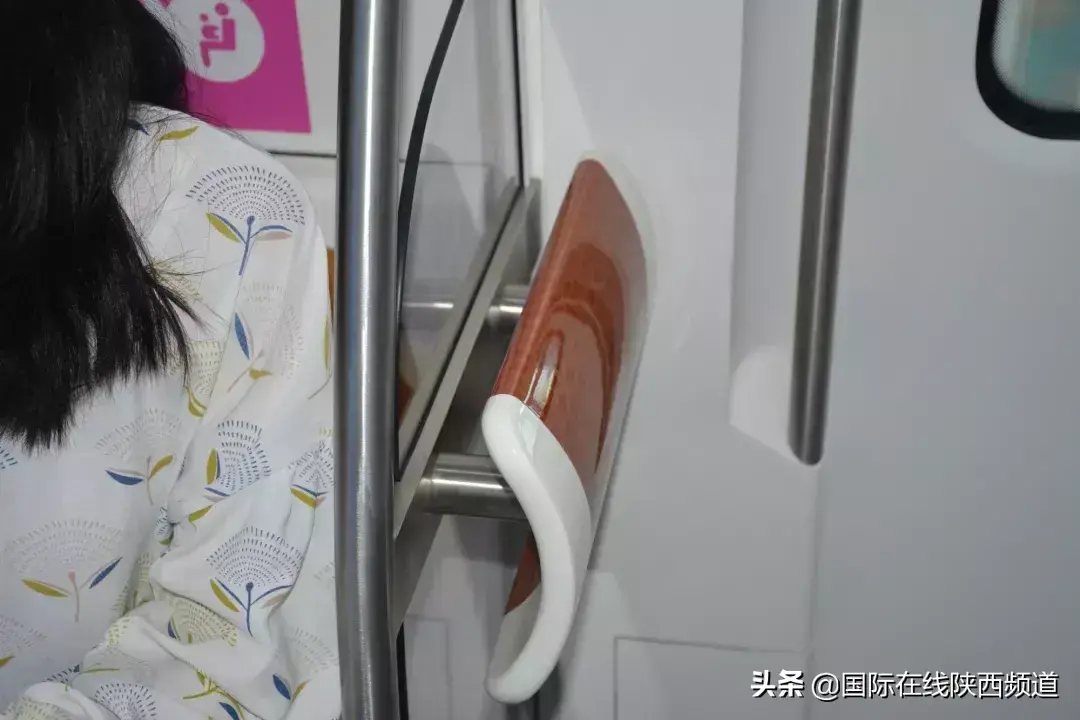 车内搭配辨识度高的动态地图和车厢端部LCD显示屏,除了有车辆运行及到站信息之外,同时考虑到轨道线路两端连接的是高铁北客站和西安咸阳国际机场,外地旅客较多,显示屏信息还包括了出入站口位置等,更加丰富全面。