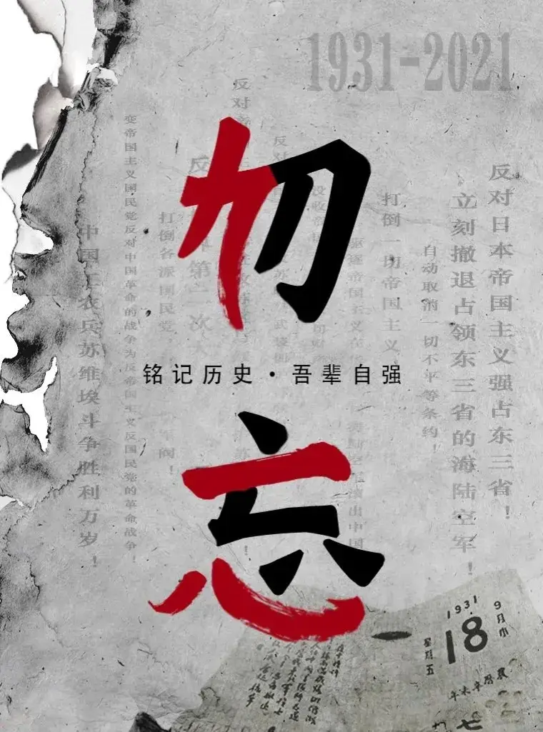 在九一八事变的枪炮声中,中国人民开始了长达14年的屈辱血泪史。然而,正是这一段段的历史告诉我们,只有通过不断的努力和奋斗,才能赢得真正的尊严和自由。让我们铭记历史,缅怀革命先烈,珍爱和平,勿忘国耻吾辈自强,为实现中华民族伟大复兴而努力奋斗!